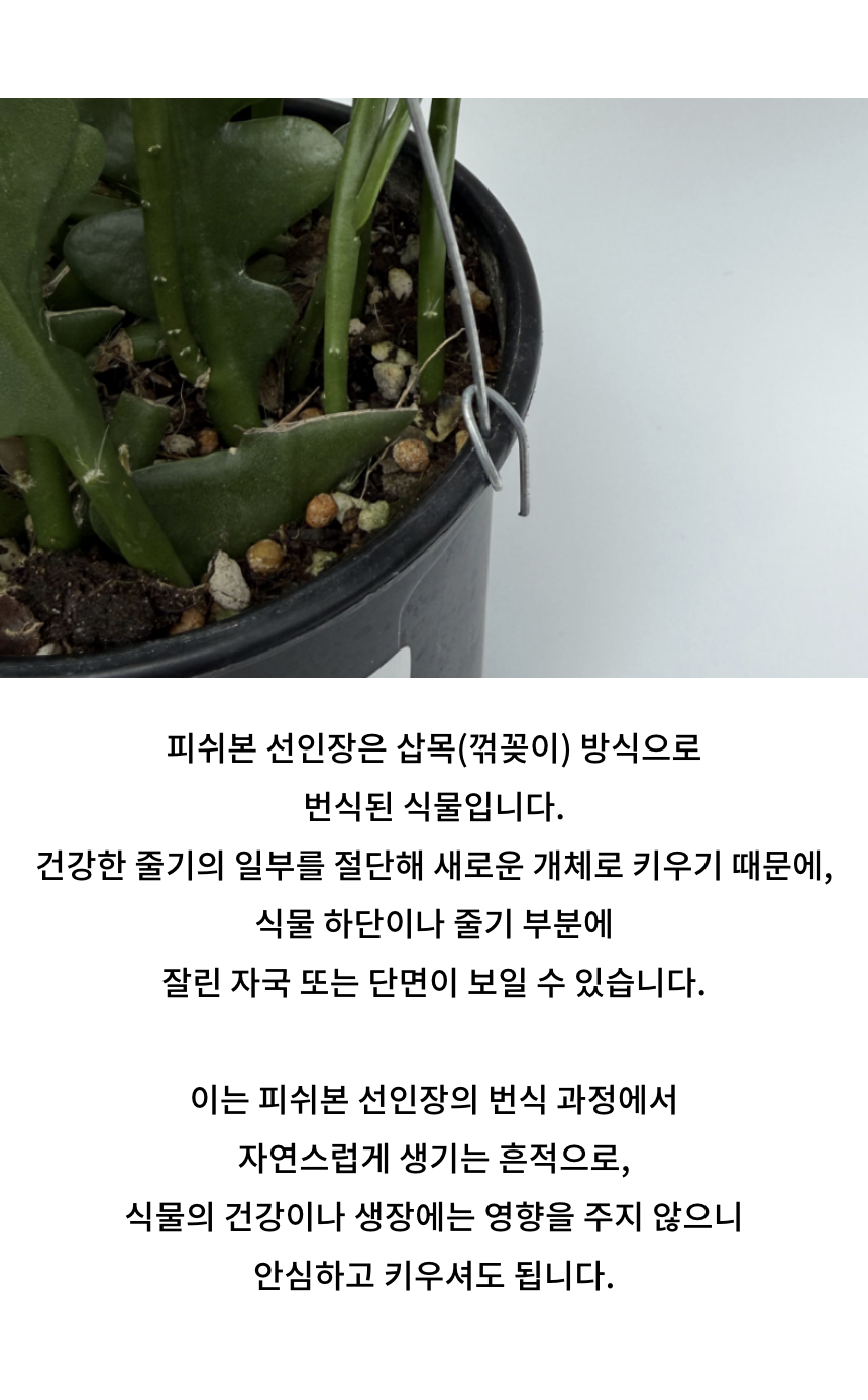 -모든 식물에게는 상처 등의 증상이 있을 수 있습니다. 잎이 시들고 새로운 잎을 내며 자라는 것은 식물에게 자연스러운 현상입니다. 이러한 이유로 교환 / 환불이 불가하기 때문에 이점 참고하시어 신중히 구매를 결정해주세요.